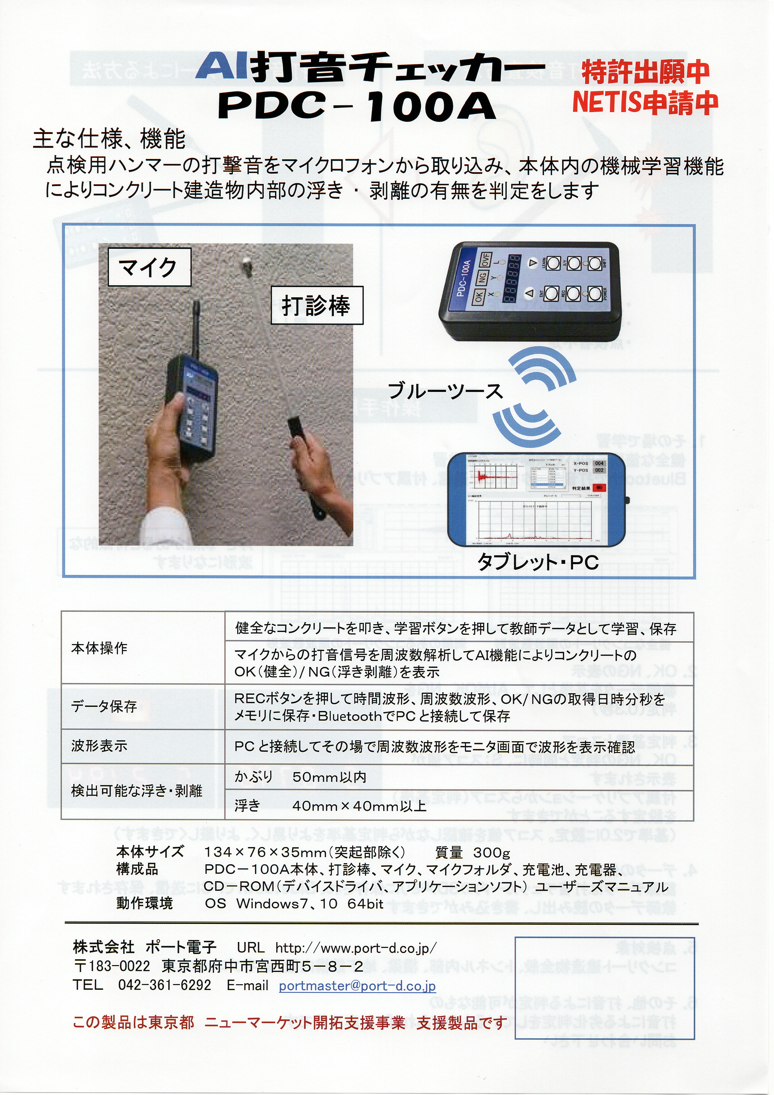 AIに打音波形を学習させることで、機械的に打音を判定することができます。 機器は軽量でハンディサイズです。操作もシンプルですので、現場での適用性に優れています。打音検査の結果を記録する際に最適な試験機です。